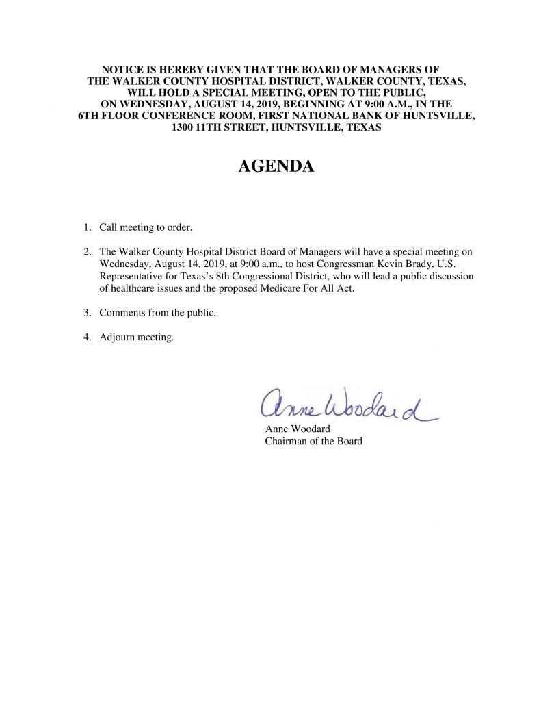 Agenda: August 14, 2019 Special Meeting by Joe Whitehead | Aug 9, 2019 | Meeting Information, Special Meeting
